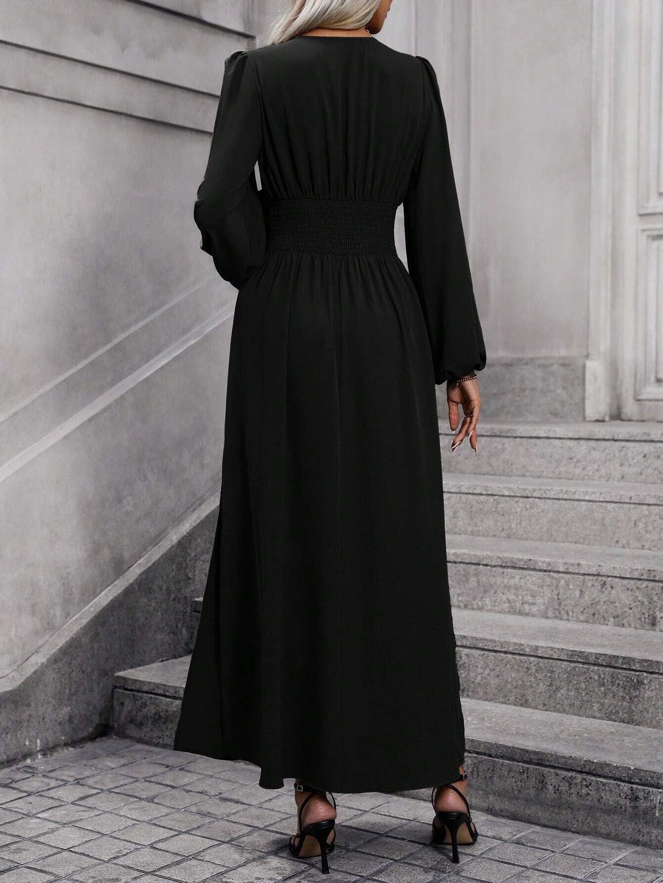 Women'S Lantern Sleeve Pull-Up High Slit Dress