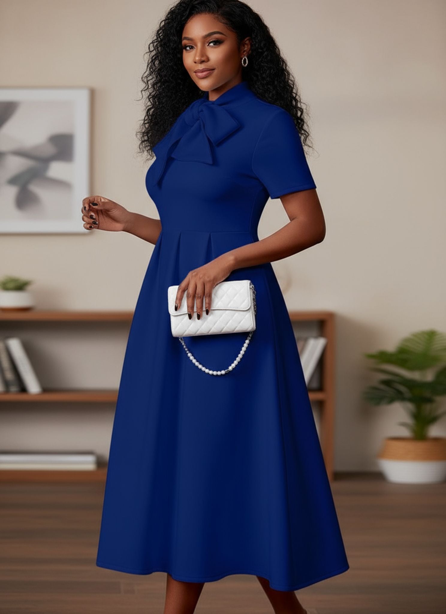 Women'S New Elegant Casual Short Sleeve Dress Work Party A-Line Skirt With Pockets