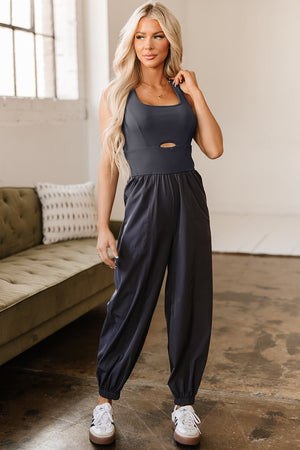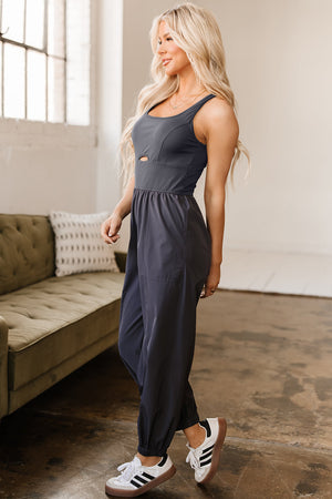 Carbon Grey Back Crossed Straps Hollow Out Jogger Jumpsuit