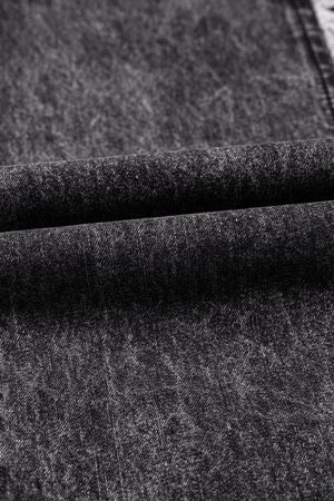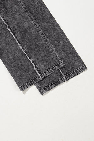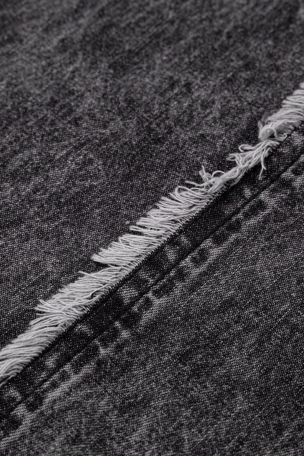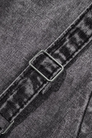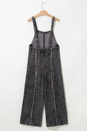 Dark Grey Light Wash Frayed Exposed Seam Wide Leg Denim Overall