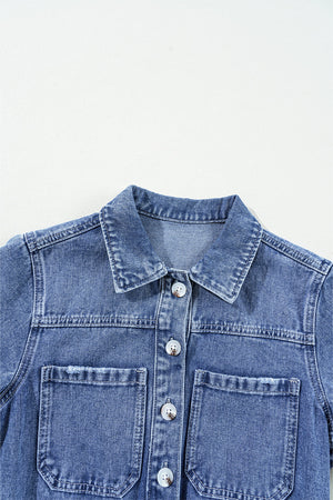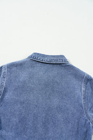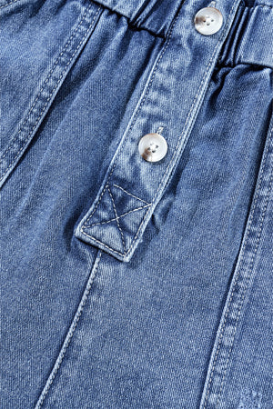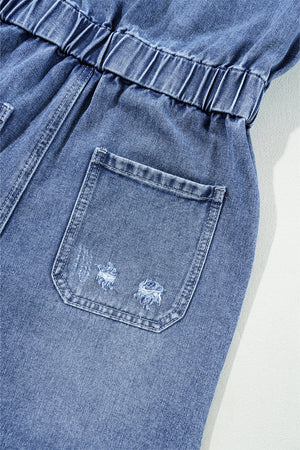 Dusk Blue Chest Pocket Front Buttoned Folded Edge Denim Short Sleeve Romper
