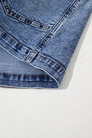 Dusk Blue Sleeveless U Neck Patched Pocket Denim Romper
