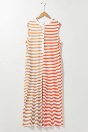 Orange Stripe Oversized Buttoned Front Sleeveless Wide Leg Jumpsuit