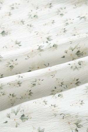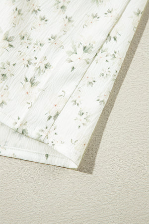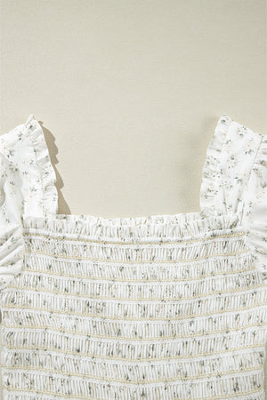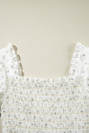 White Boho Floral Smocked Wide Leg Short Puff Sleeve Jumpsuit