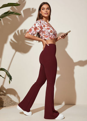 Casual Knitted Sports Pants Falling Flare High Waist Yoga Pants