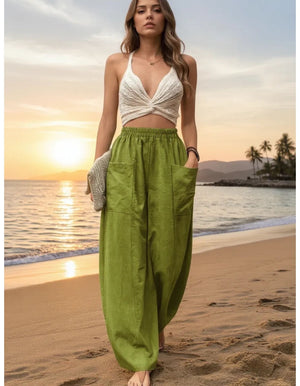 Pants Solid Color Pockets Women'S Slacks Elasticated Pants Trousers Trouser