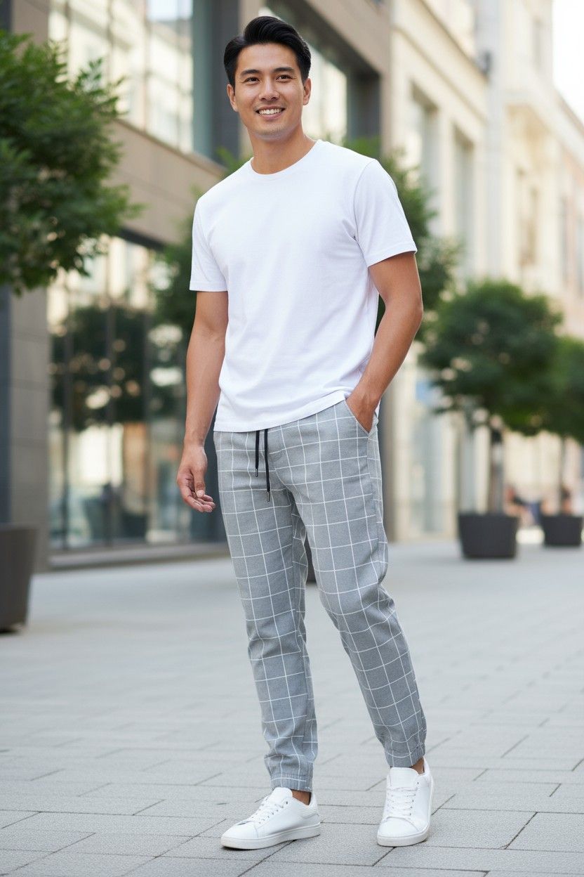 Trendy Pants Plaid Casual Pants Fashion Men'S Slacks Rope Pants