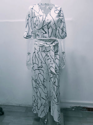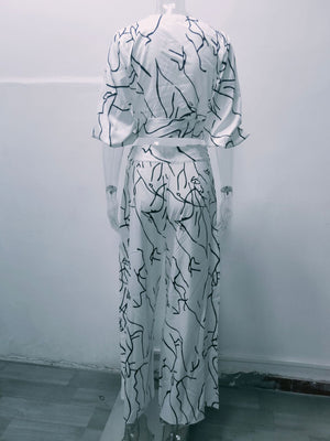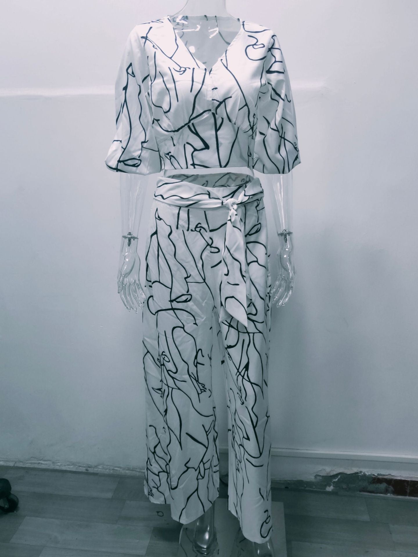 V-Neck, Lantern Sleeve Cropped Top, High-Waisted Wide-Leg Pants, Two-Piece Set