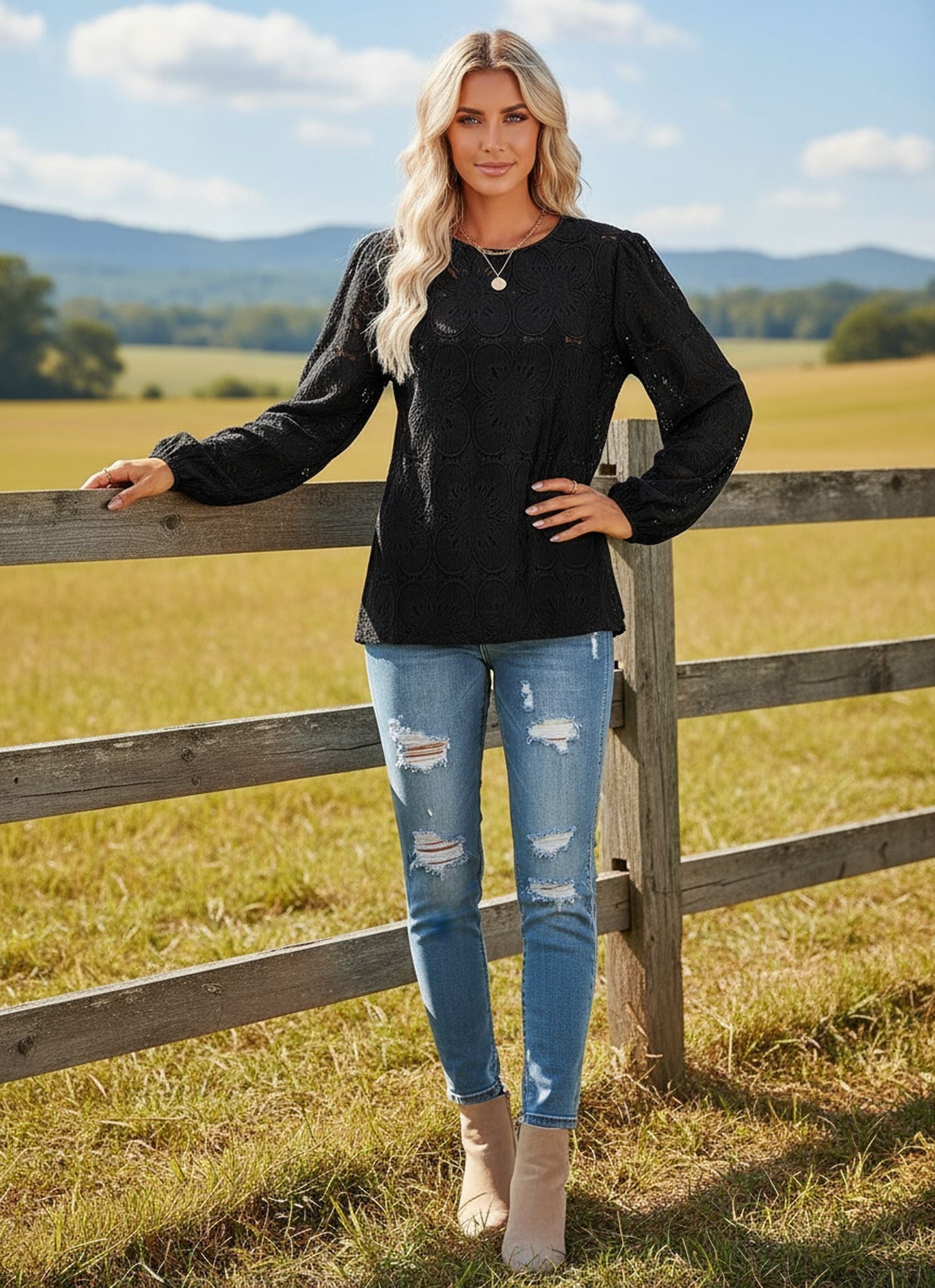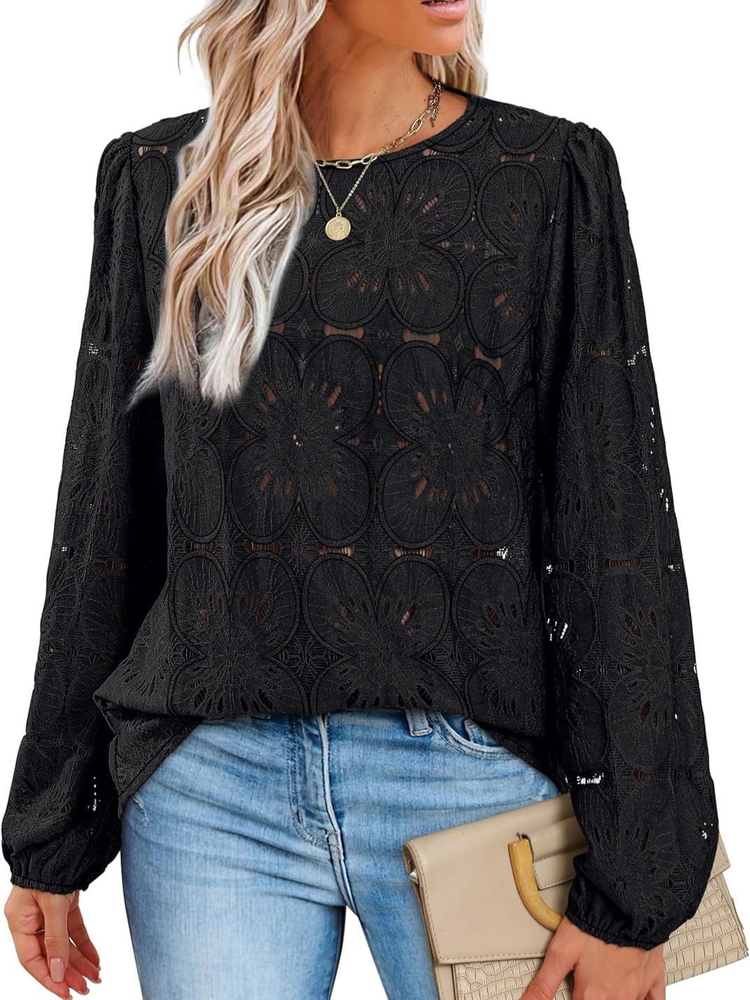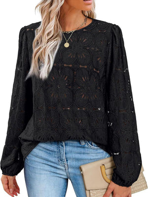 Size chart for Casual Hollow Lace Long-Sleeved Shirt