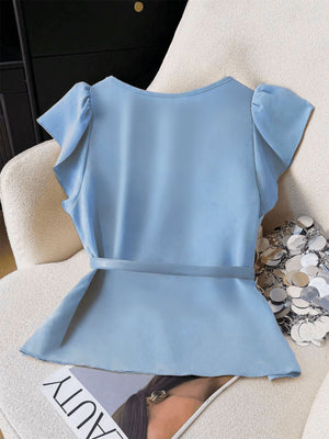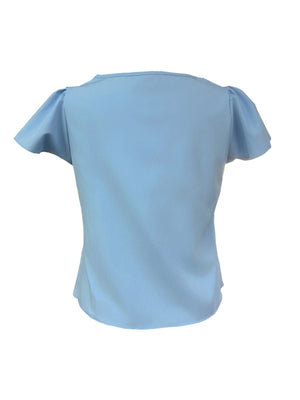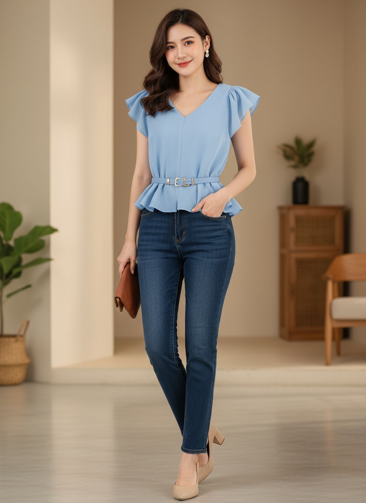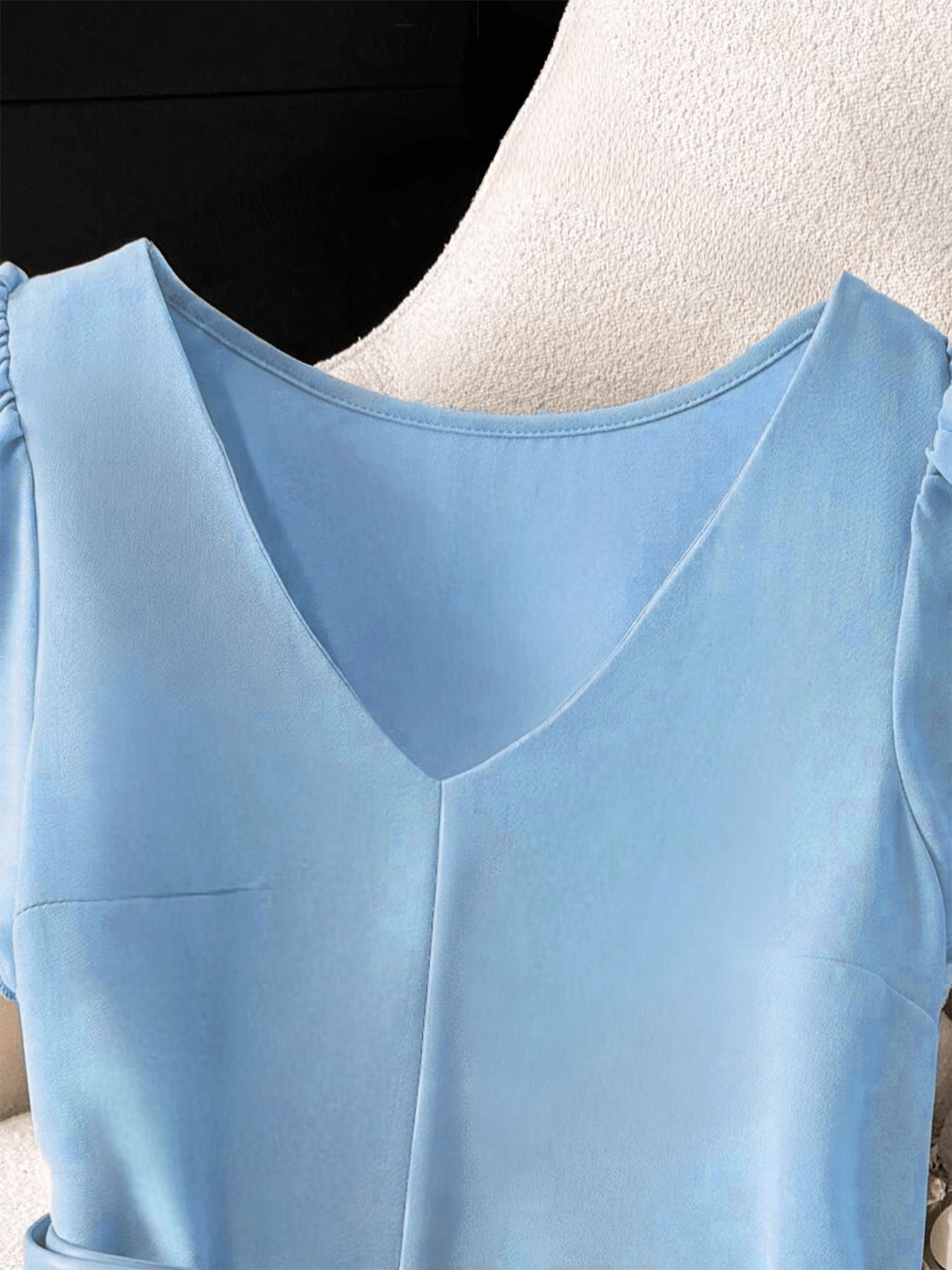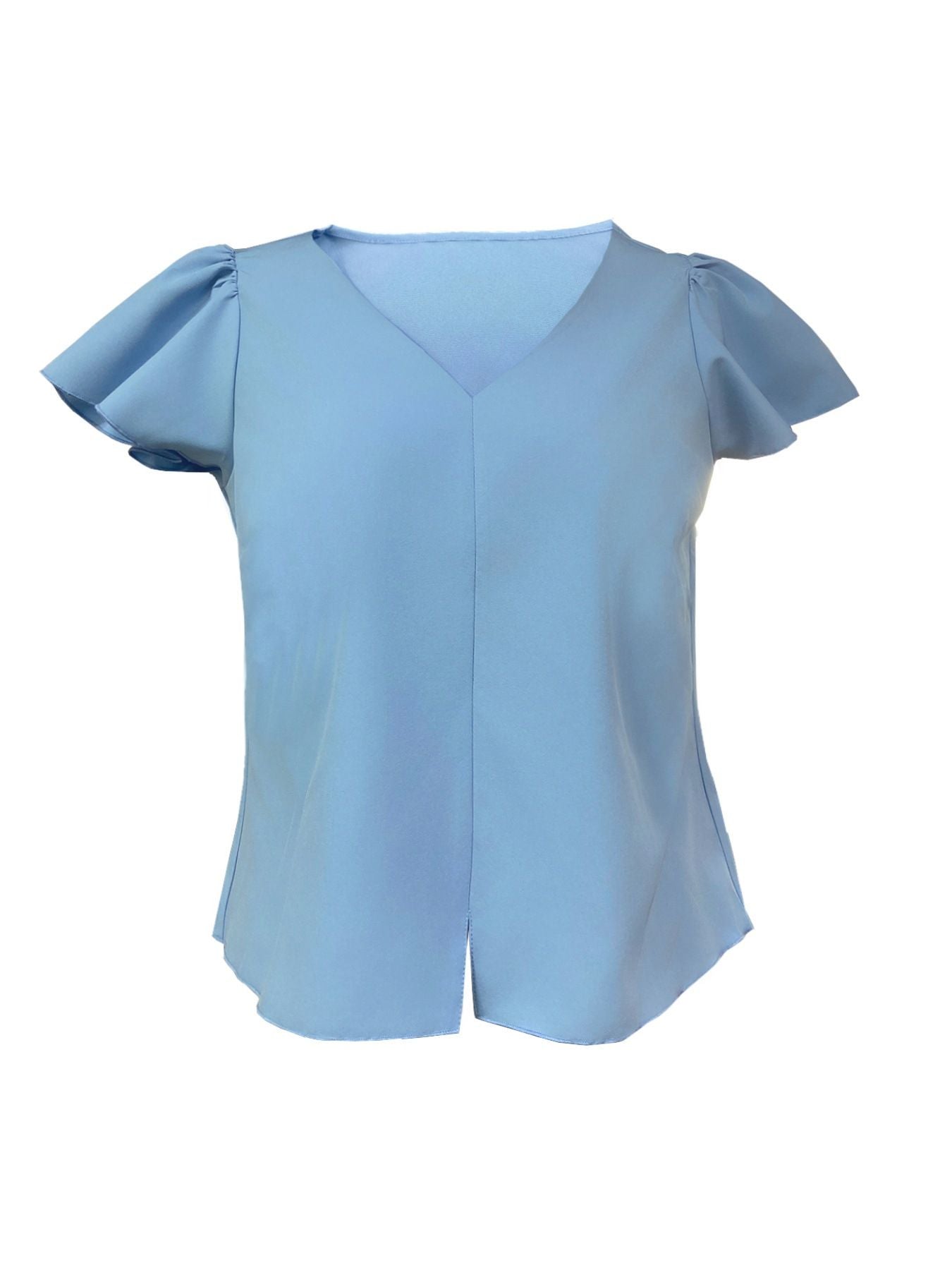 French Light Mature Niche Blue Women'S V-Neck Simple Elegant Shirt
