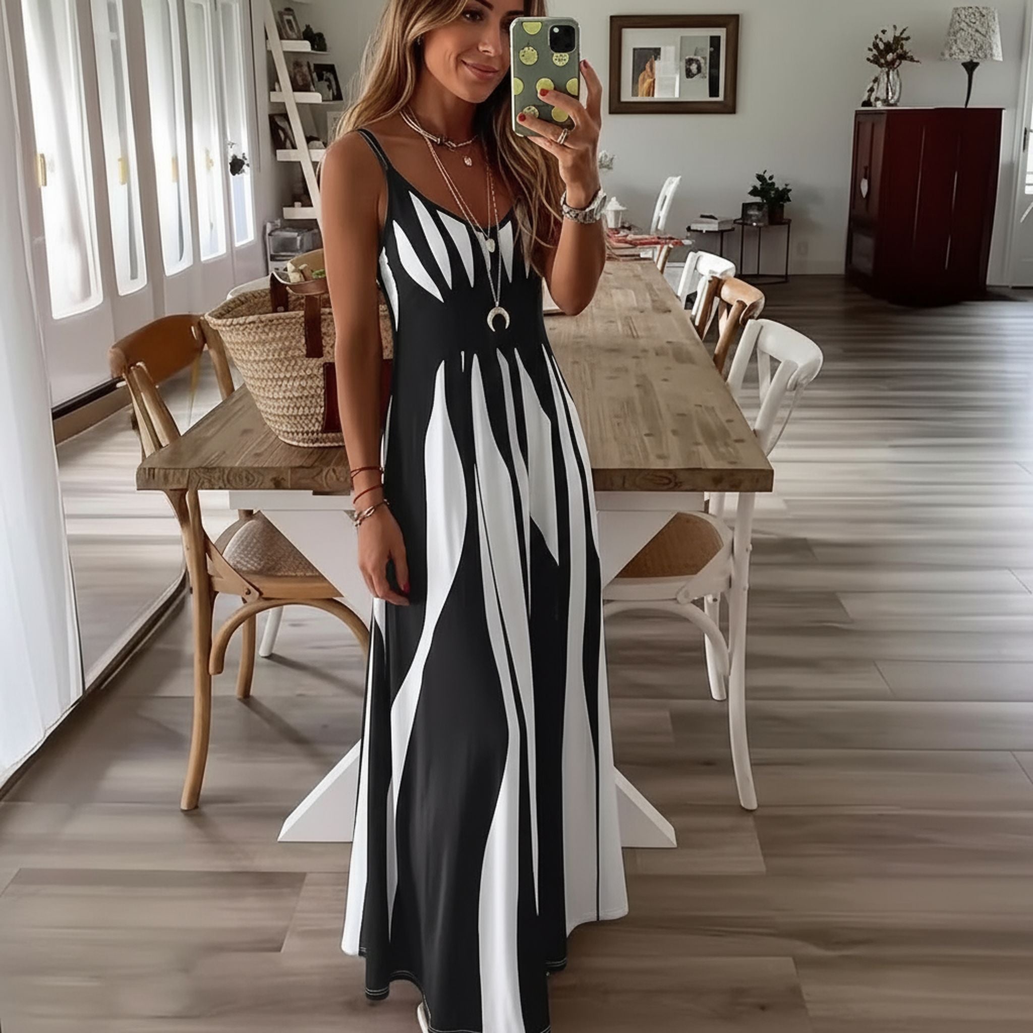 Casual Slip Geometric Pattern V-Neck Long Skirt