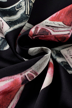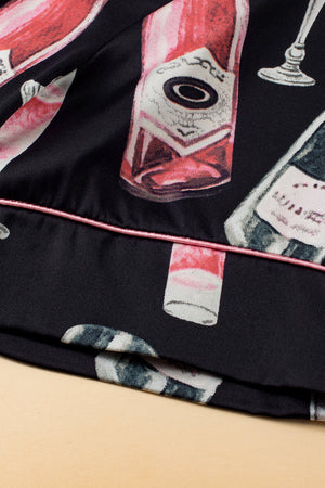 Black Champagne Print Silky Short Sleeve Pajamas Set