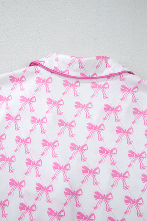 Pink Bowknot Printed Short Sleeve and Ruffled Shorts Pajama Set