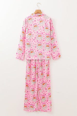 Pink Santa Claus Snowflake Long Sleeve Shirt Christmas Pajama Set