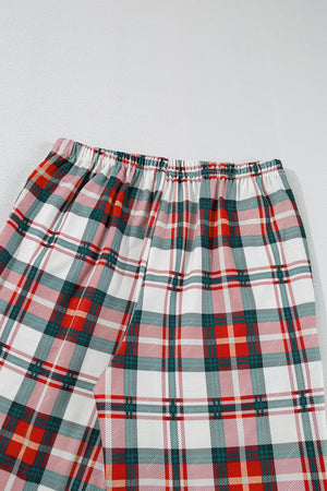 Red Christmas Plaid Print Two Piece Long Sleeve Pajamas Set