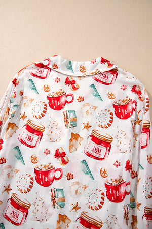 White Christmas Pattern Long Sleeve Shirt and Pants Pajama Set