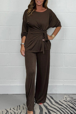 Casual Fashion Lace-Up Long Sleeve Top And Pant Suit