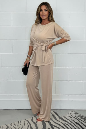 Casual Fashion Lace-Up Long Sleeve Top And Pant Suit