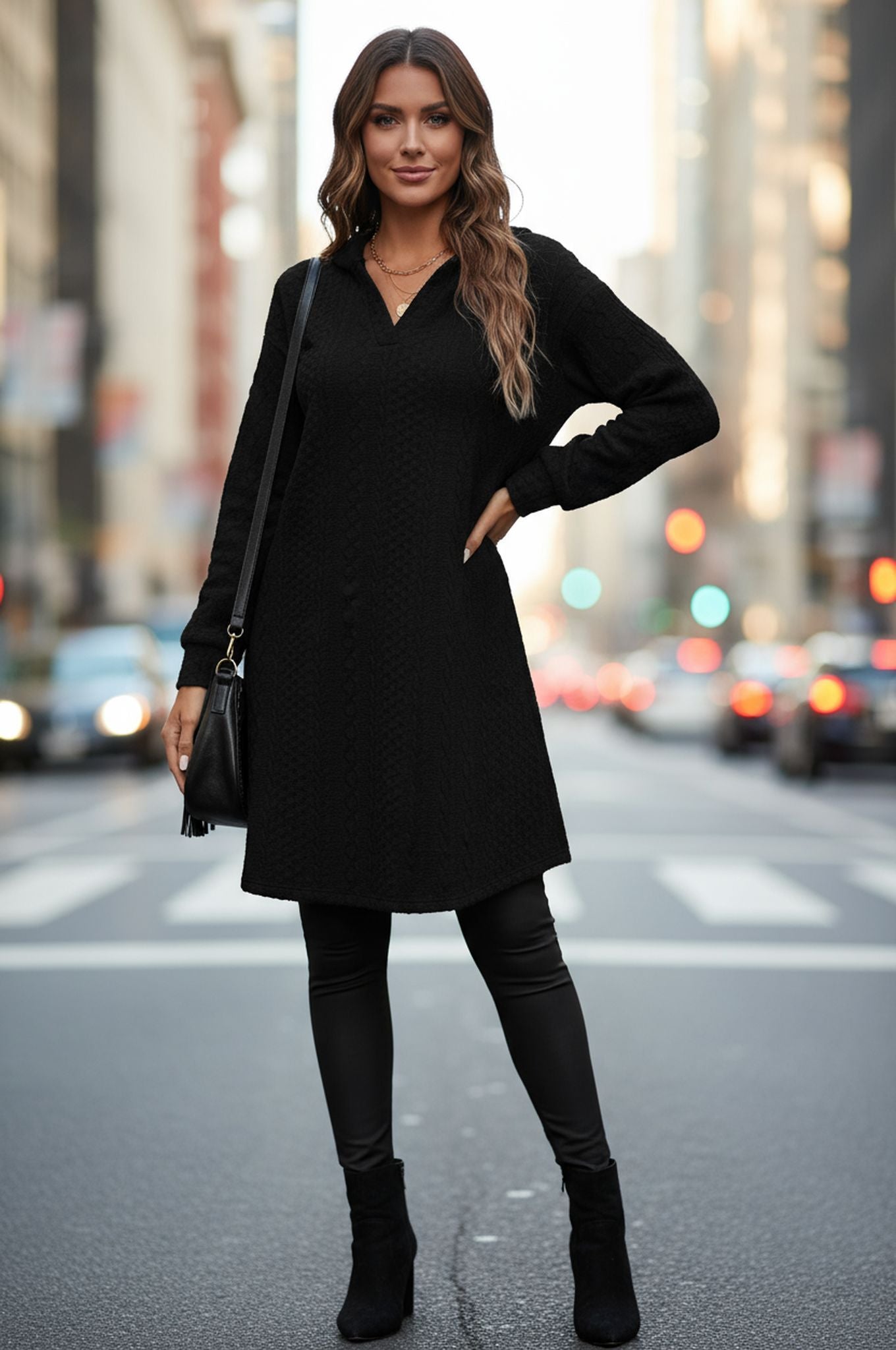 Knitted Jacquard Long-Sleeved Long Hooded Sweatshirt