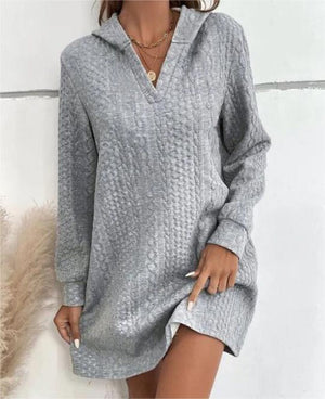 Knitted Jacquard Long-Sleeved Long Hooded Sweatshirt