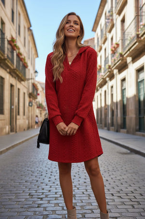 Knitted Jacquard Long-Sleeved Long Hooded Sweatshirt