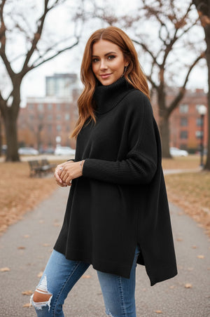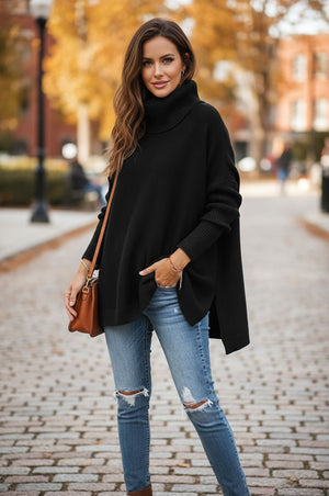 Length Bat Sleeve Hem Tunic Pullover Sweater Knitted Girl