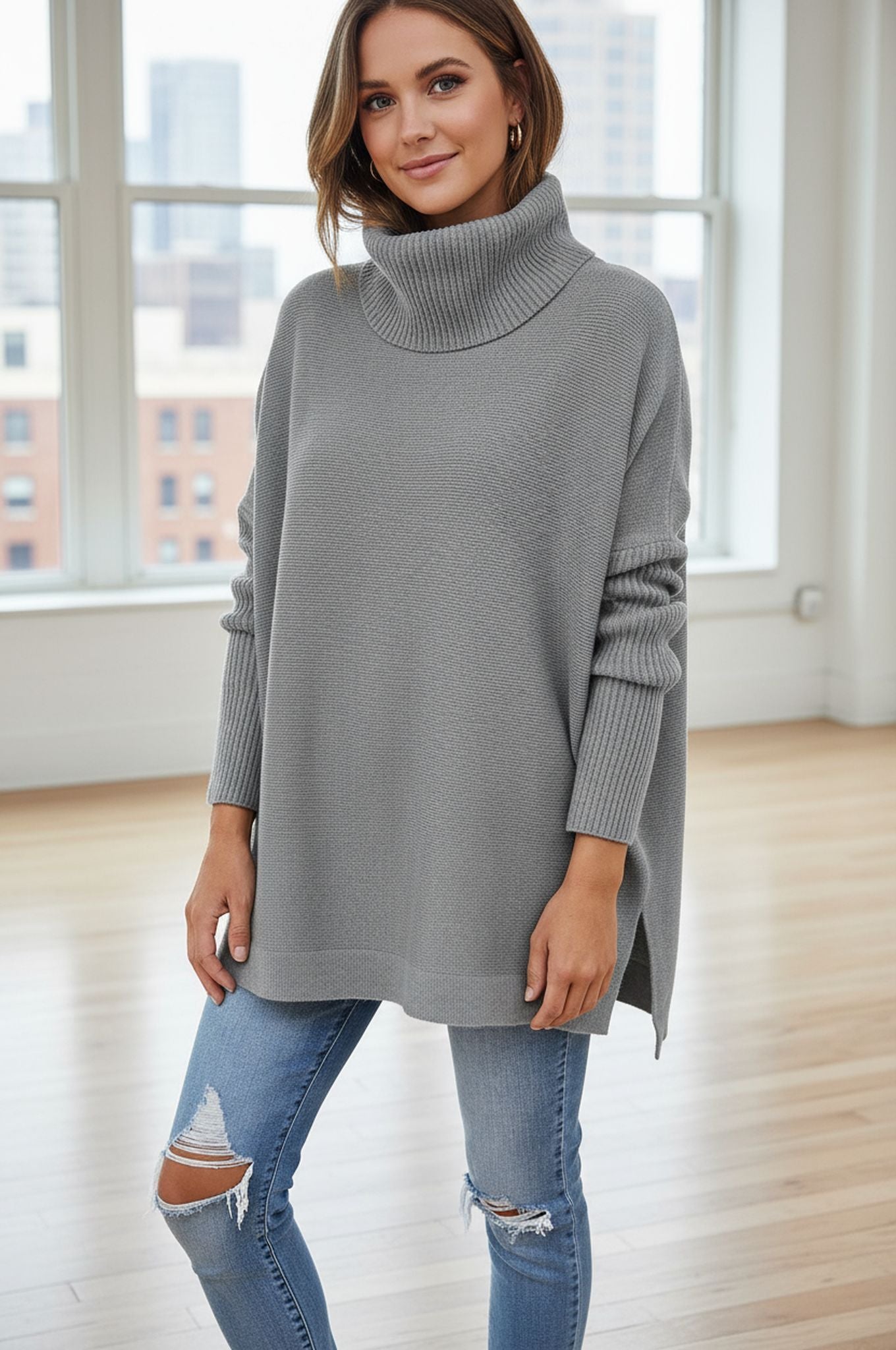 Length Bat Sleeve Hem Tunic Pullover Sweater Knitted Girl