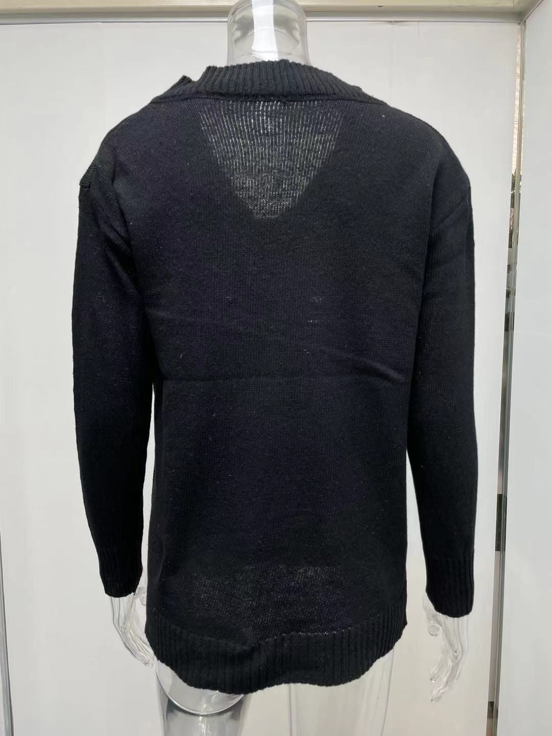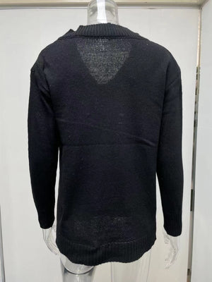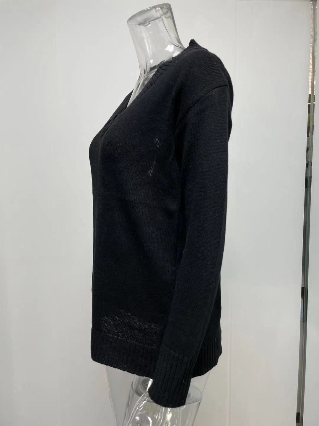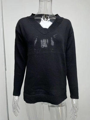 Solid Color Sweater Women'S V-Neck Long Sleeve Pullover Knitted Top