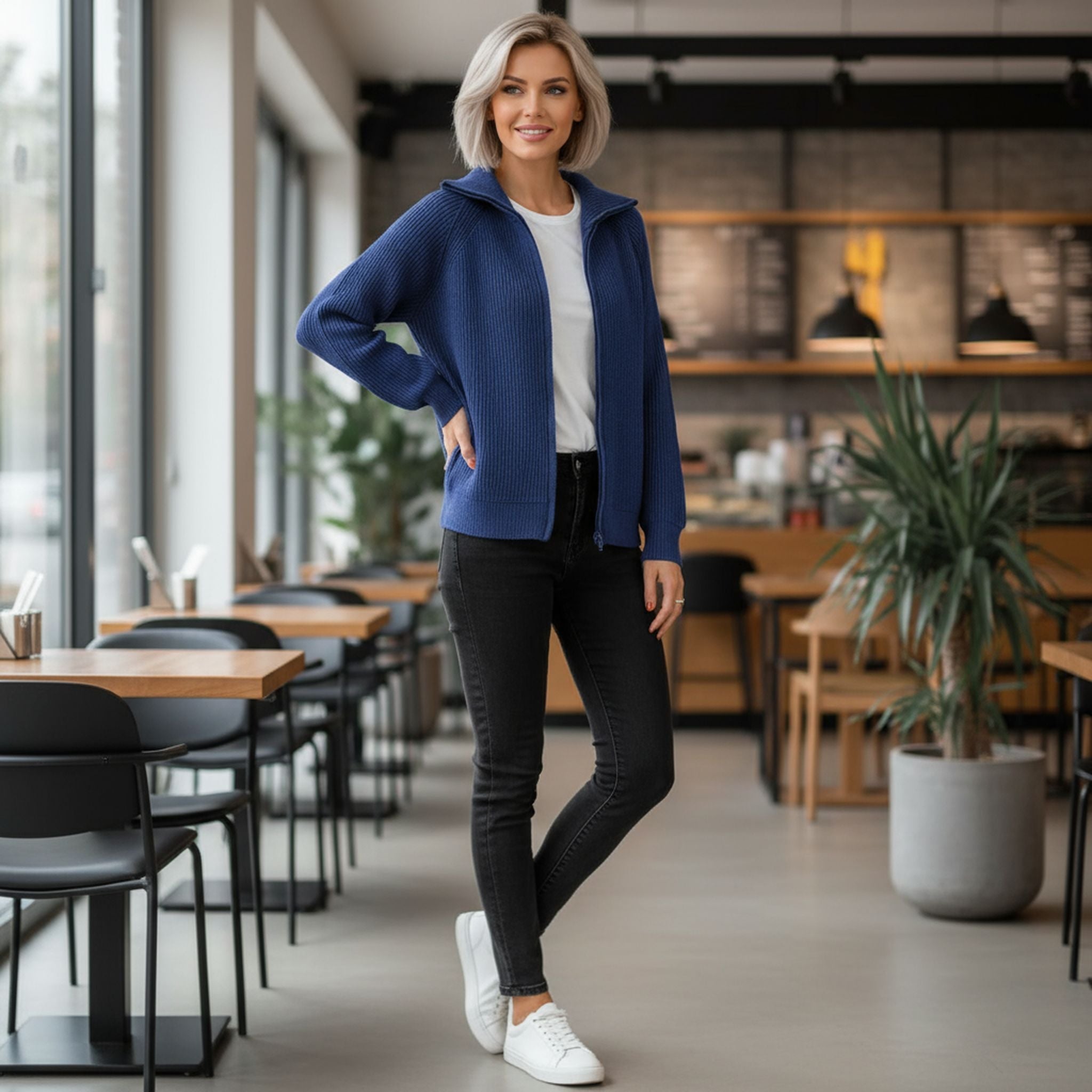 Size chart for Winter New Striped Casual Jacket, Loose Knitted Sweater, Zipper Cardigan, Long Sleeves, Lapel Sweater, Women
