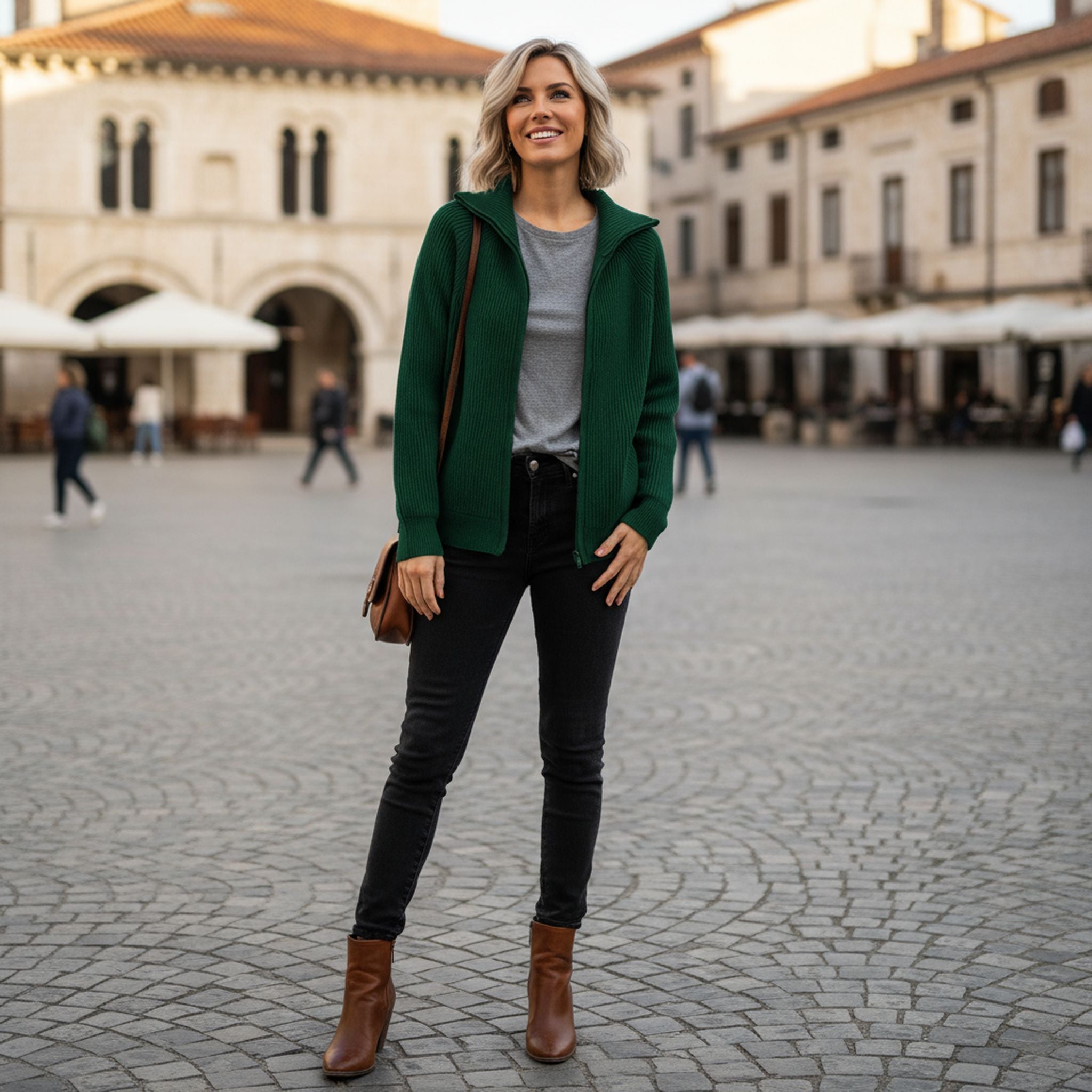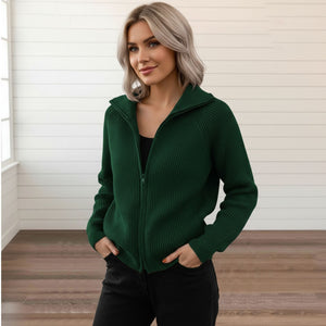 Winter New Striped Casual Jacket, Loose Knitted Sweater, Zipper Cardigan, Long Sleeves, Lapel Sweater, Women