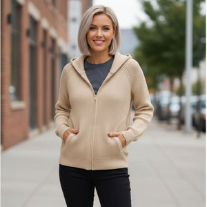 Winter New Striped Casual Jacket, Loose Knitted Sweater, Zipper Cardigan, Long Sleeves, Lapel Sweater, Women