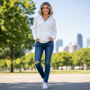 Zipper Hooded Pocket Solid Color Waffle Long-Sleeved Sweatshirt