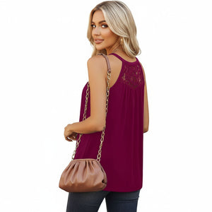 Lace Pleated Sleeveless Vest T-Shirt Women Cross-Border Women'S