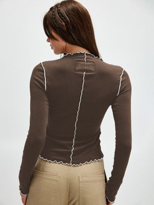 New Contrasting Rolled Edge Semi-Turtleneck Long-Sleeved T-Shirt