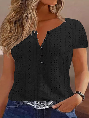 New Fashion Casual Loose Crew Neck Jacquard Hollow Short Sleeve T-Shirt For Women