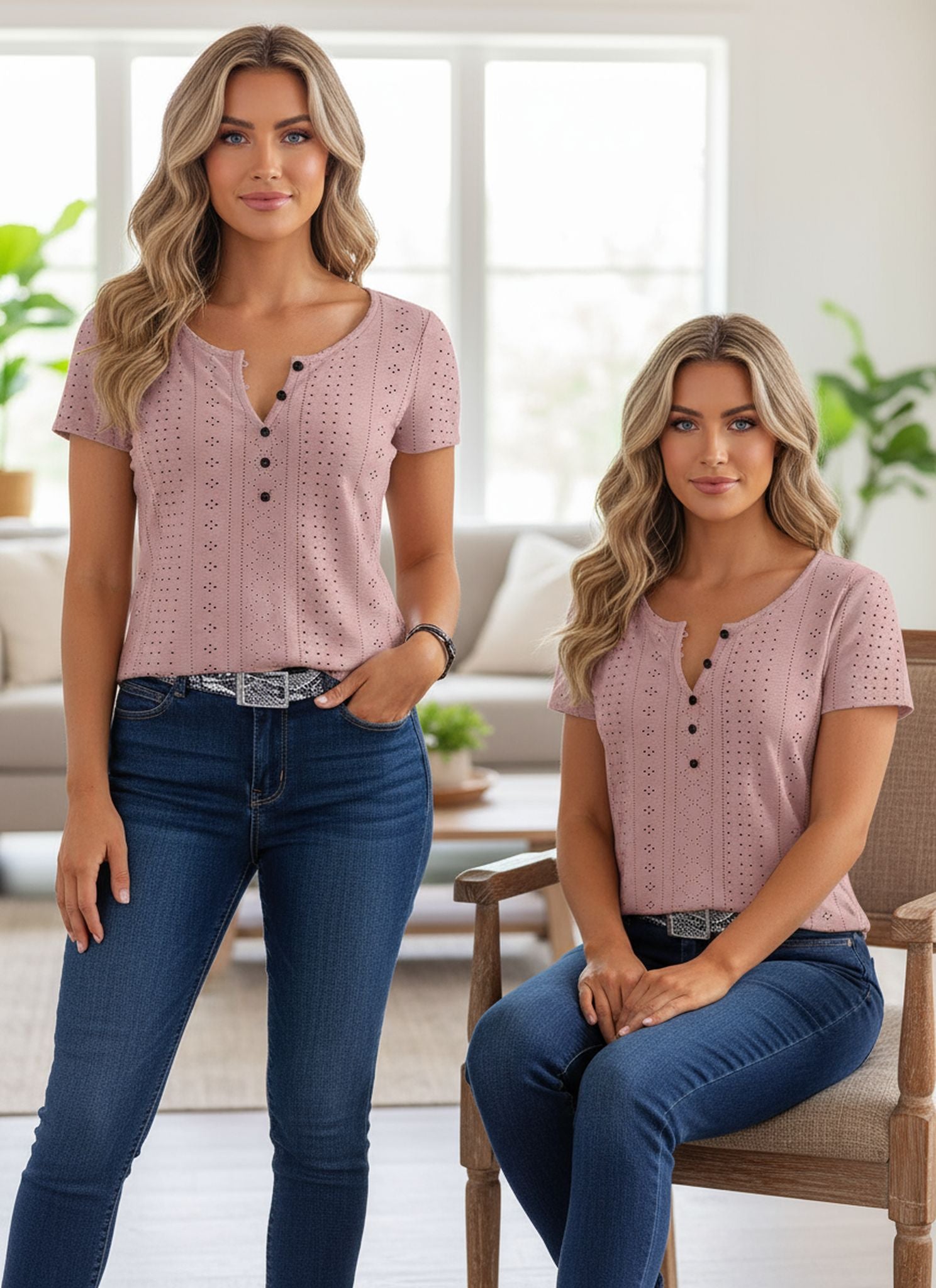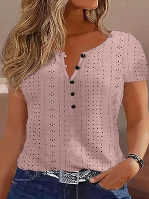 New Fashion Casual Loose Crew Neck Jacquard Hollow Short Sleeve T-Shirt For Women