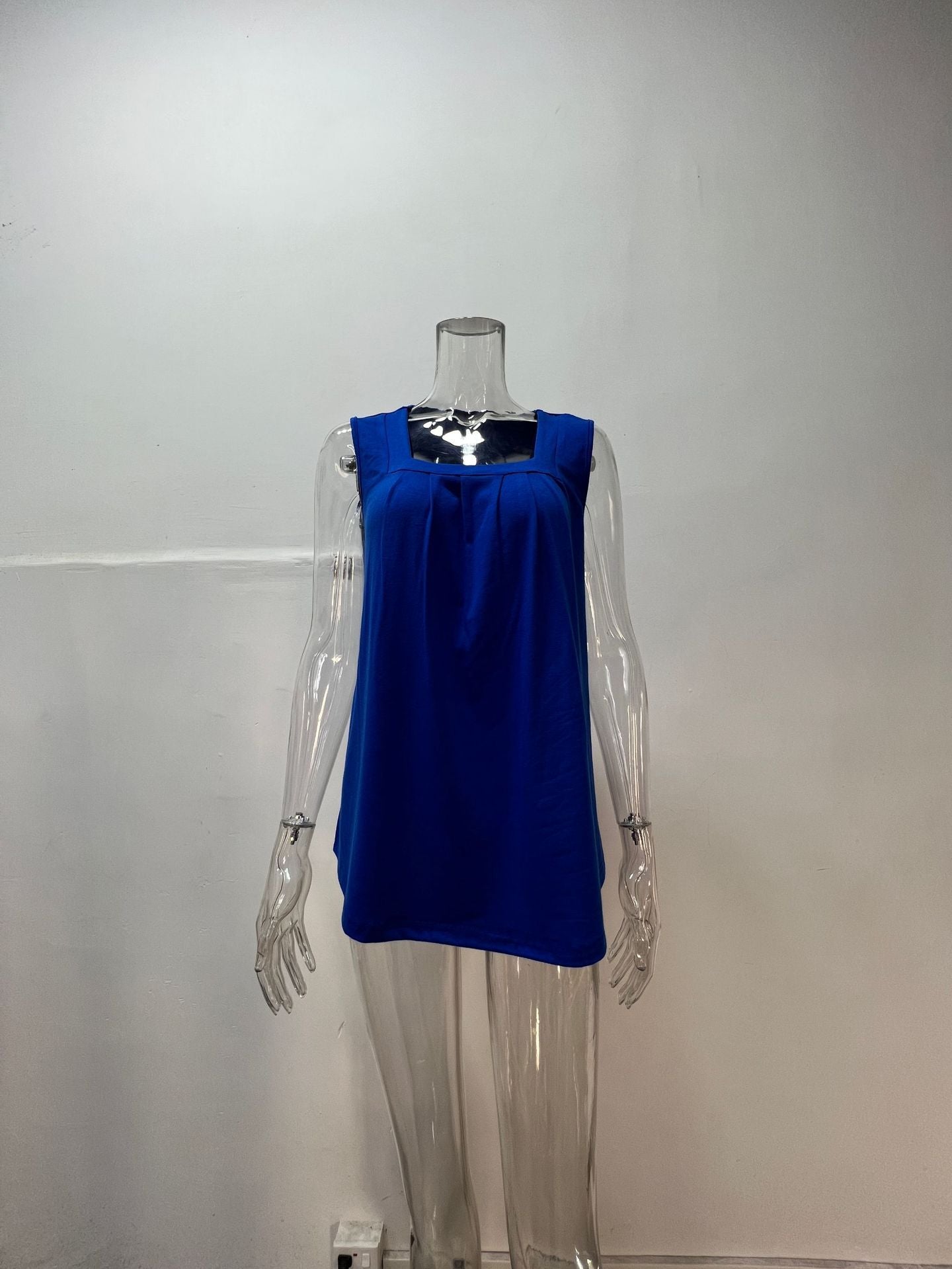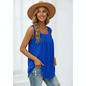 Pleated Square Neck Sleeveless Tuxedo Vest T-Shirt Cross-Border Women
