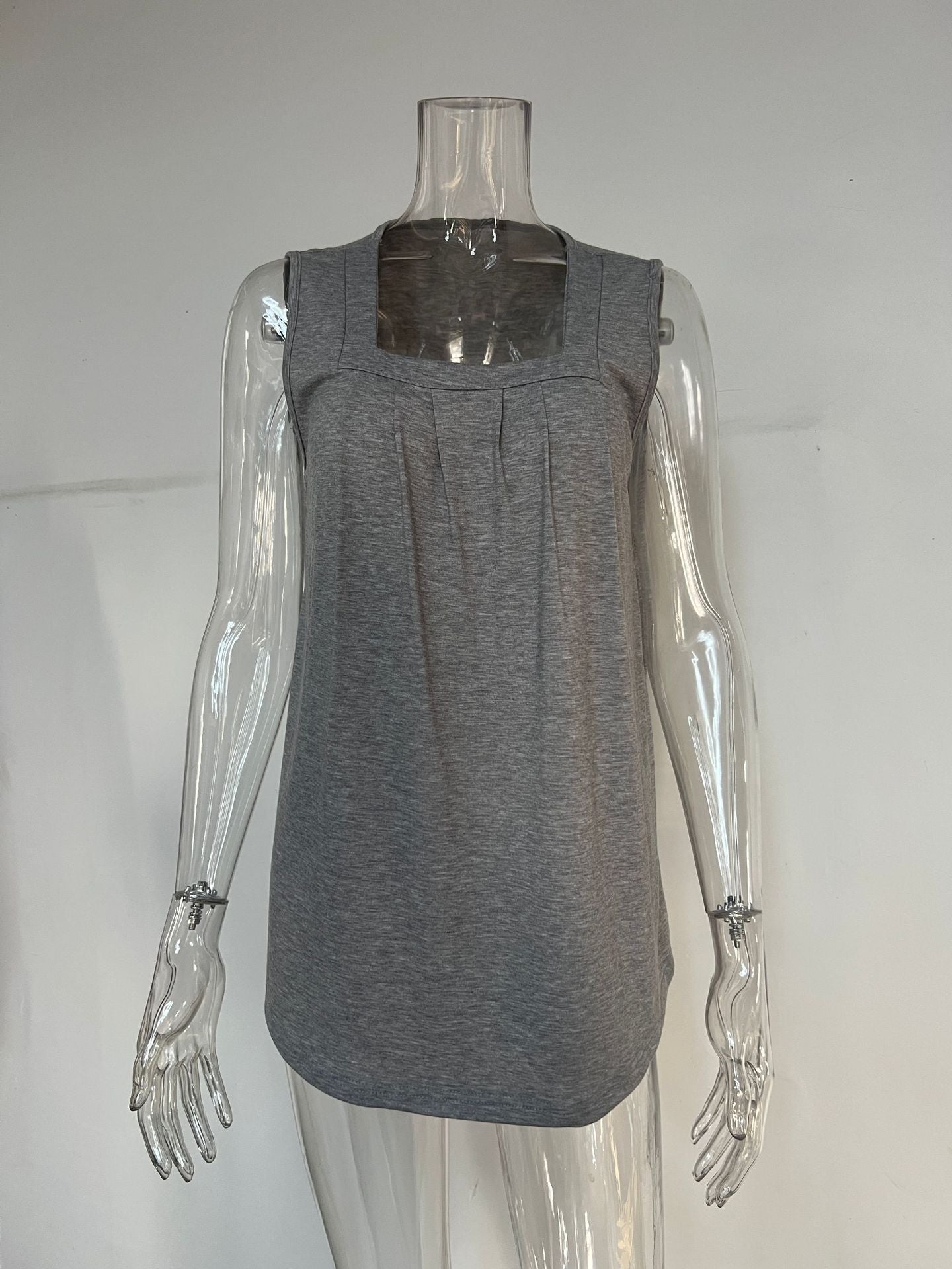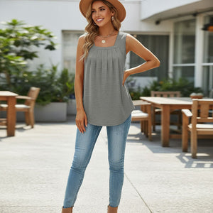 Pleated Square Neck Sleeveless Tuxedo Vest T-Shirt Cross-Border Women
