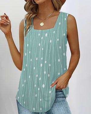 Pleated Square Neck Sleeveless Tuxedo Vest T-Shirt Cross-Border Women