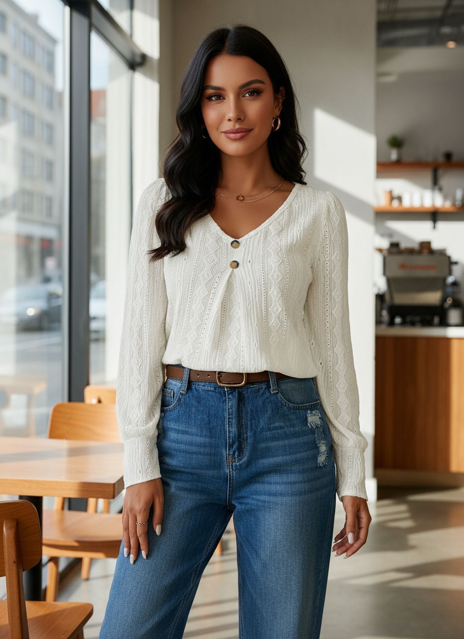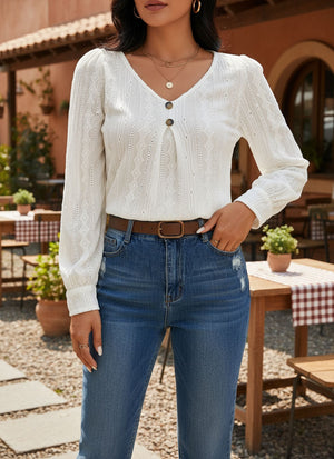Solid Color Casual Fashion Hollow V-Neck T-Shirt Top Women'S