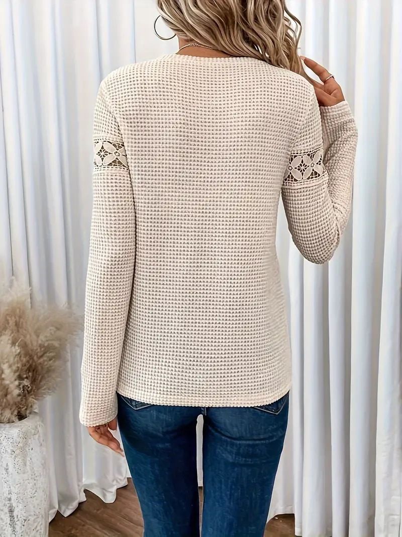Solid Color Lace Stitching Crew Neck Women'S Long Sleeve T-Shirt Women