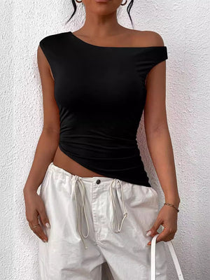 Style Street Hipster Polyester Pullover Cross Collar Slim Fit Women'S T-Shirt Black
