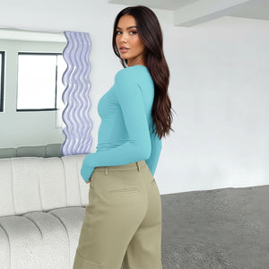 Wish Women'S V-Neck Long Sleeve Basic Slim Versatile T-Shirt Top Women