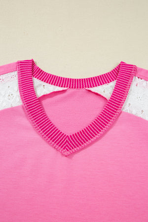 Bonbon Lace Striped Patchwork Long Sleeve Corded V Neck Plus Size Top