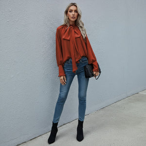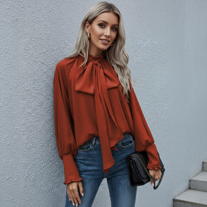 Lace-Up Bubble Long Sleeve Women'S Loose And Versatile Spot Top