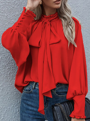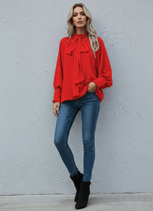 Lace-Up Bubble Long Sleeve Women'S Loose And Versatile Spot Top