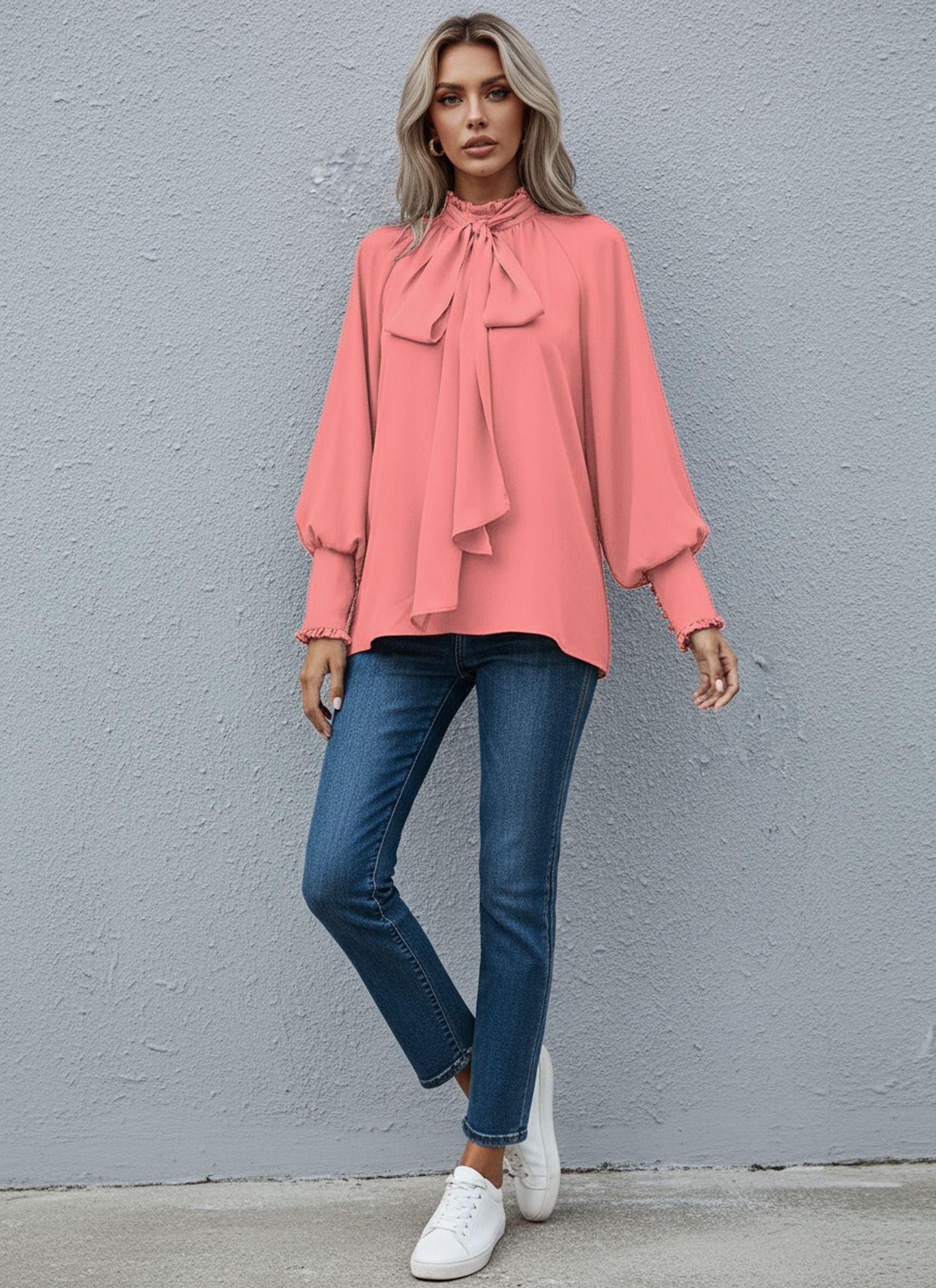 Lace-Up Bubble Long Sleeve Women'S Loose And Versatile Spot Top