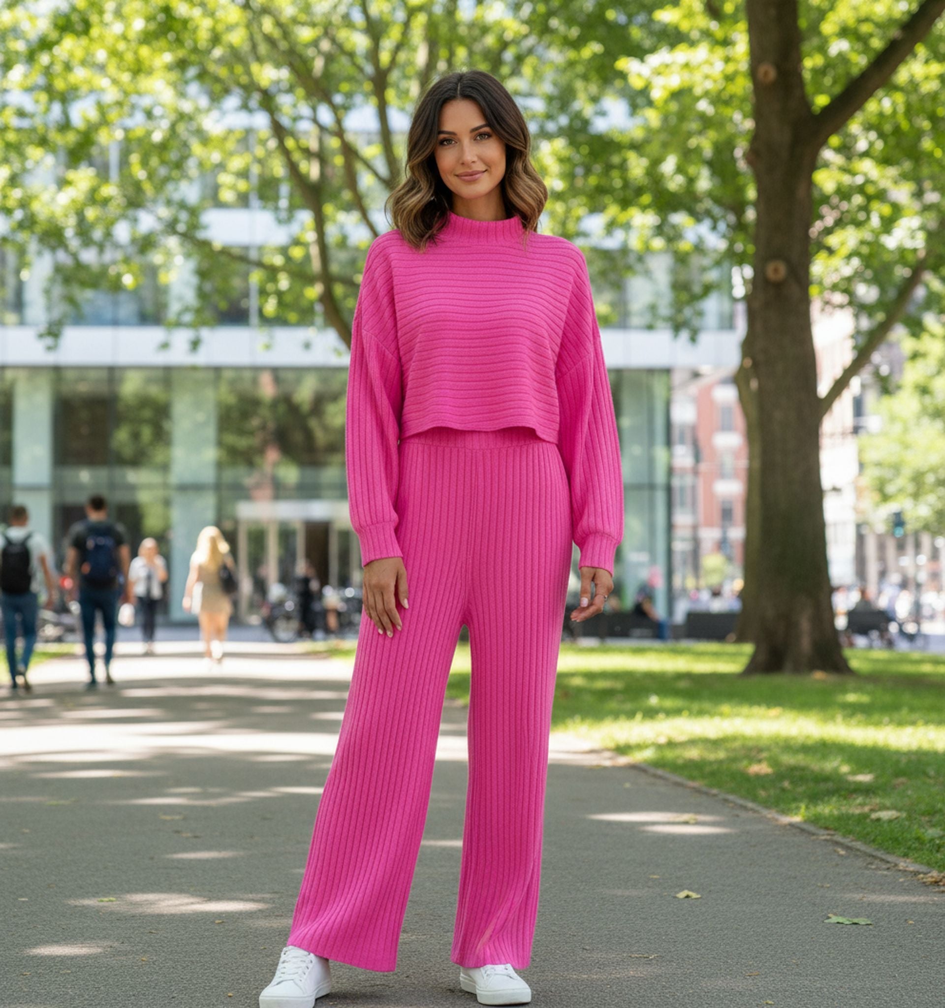 New Spring And Autumn Solid Color Knitted Fine Pit Strip Fashion Casual Suit Short Top