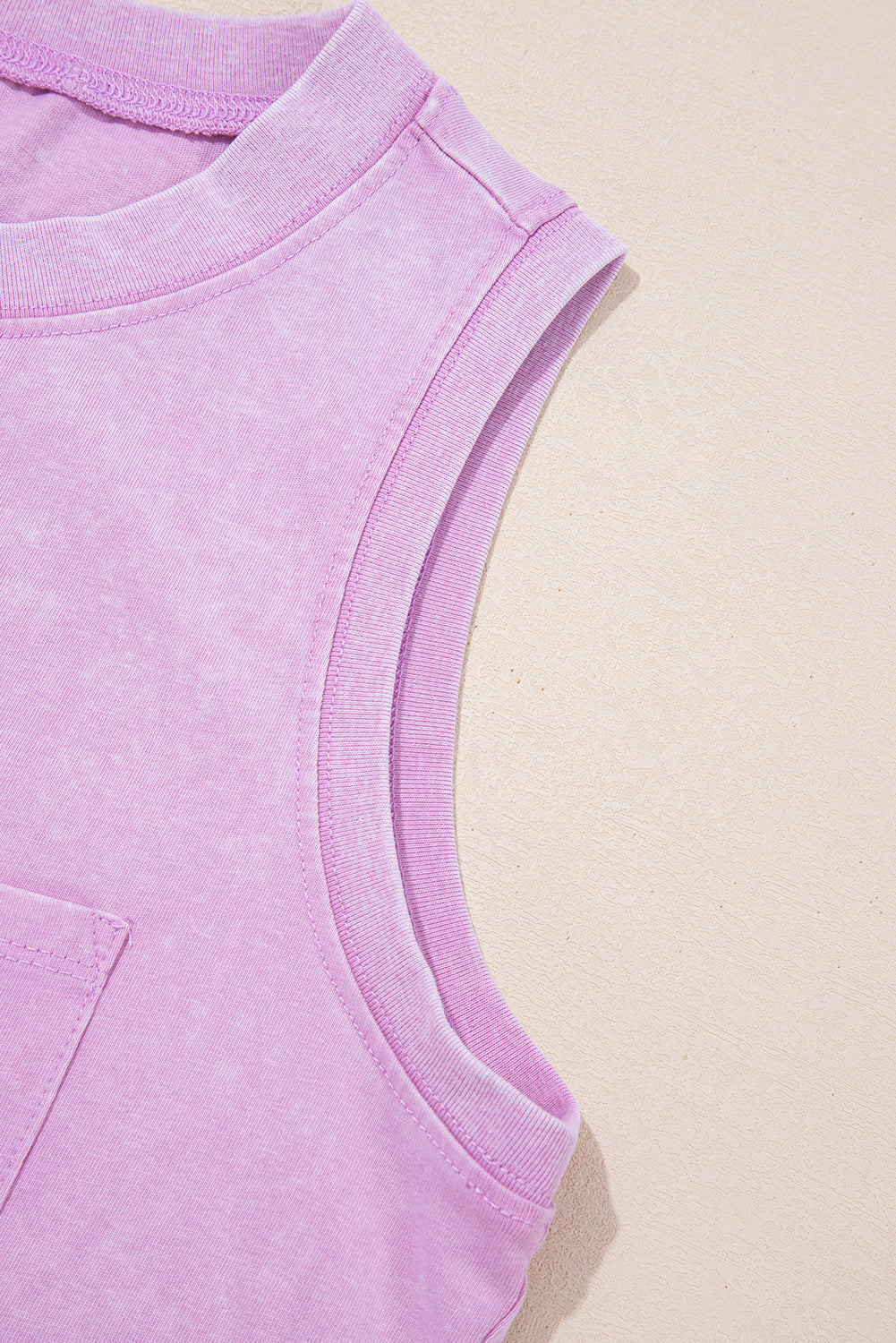 Phalaenopsis Mineral Wash Patched Chest Pocket Casual Tank Top