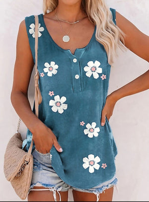 Print Vest Casual Fashion Crew Neck Sleeveless Top